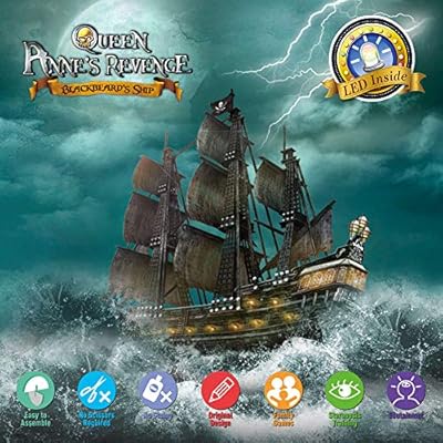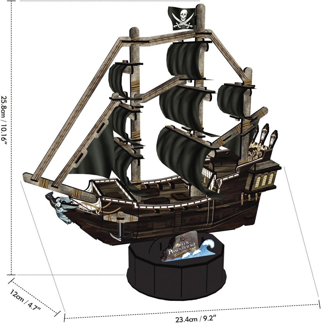Cubicfun 3d puzzle led pirate ship queen anne's revenge large 27'' model kit desk decor sailboat vessel hard puzzles for adults 340 pieces gifts for men women kids birthday gifts for him her.